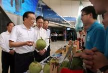 3月22日下午,李克強在三亞市民游客中心與海南的大學生創業團隊進行面對面交流,鼓勵大學生們要勇于創新和創業,其中就有海南股權交易中心掛牌企業—??谪磙r果業有限公司,李克強現場使用仨農果業研發的“開椰神器...