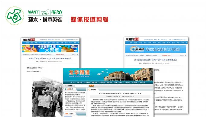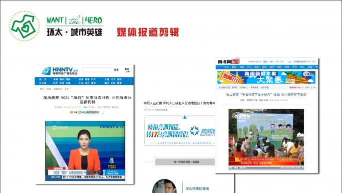 1、提升合作企業品牌形象,增加合作方內部良性互動,增強企業內部員工凝聚力,有利于企業文化建設。 2、WANT環太城市英雄微信公眾號:近7000粉絲,每期推送閱讀量2000至5000。 3、城市英雄·環小太:個人微信服務號,近2000用戶。 4、每周小區活動:每周會選擇四到六個小區做線下活動。 5、上門舊衣回收服務,每周200家左右,下周增加一組回收人員后業務量大概400至500一周。 6、50個綠色聯盟商家會員。 |