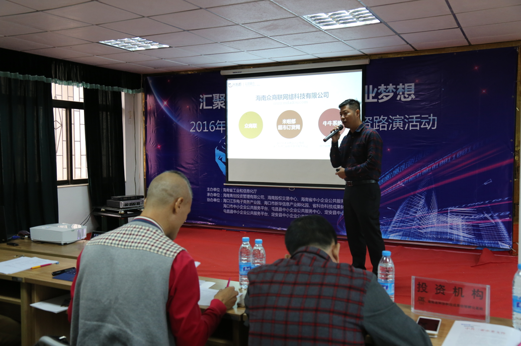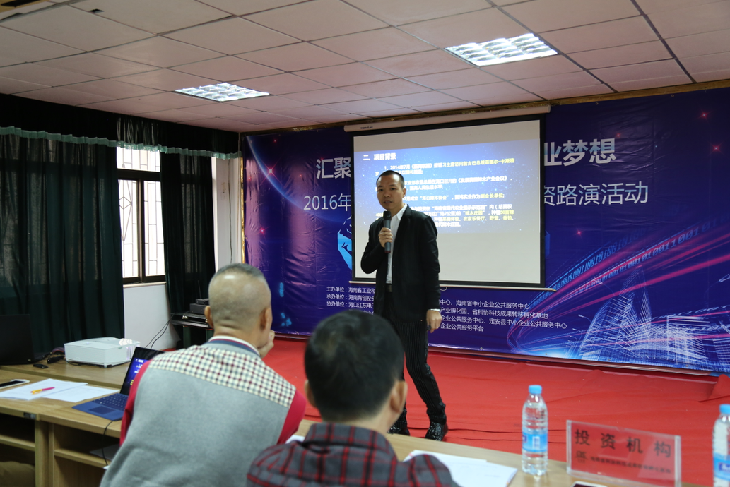 11月24日,“匯聚投資力量,助燃創業夢想——2016年海南省創業創新項目投資路演”在海南省科技活動中心順利舉行,同時這也是海南股權交易中心第16期企業路演。活動由海南省工業和信息化廳主辦,海南股權交易中心、海南青創投資管理有限公司、海南省中小企業服務中心聯合承辦,海口江東電子商務產業園等多家單位協辦。9家路演企業、團隊及6家投資機構參加此次路演活動。
