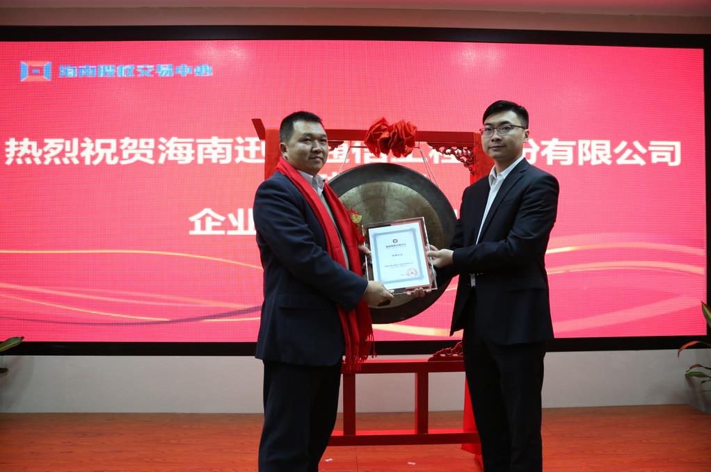 12月28日,海南股權交易中心成立兩周年之際,在股交中心“助力中小微企業發展工程”啟動暨企業集體掛牌儀式上,一共有10家企業正式掛牌股交中心,海南金融控股股份有限公司副總經理吳子魁,海南股權交易中心副總經理吳惠玉、副總經理程棟才、副總經理許博分別與企業共同鳴鑼并向企業代表授牌。