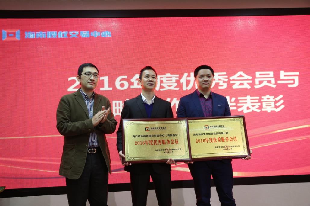 隨后,為了鼓勵會員機構及戰略合作伙伴繼續向中小微企業提供更加優質的服務,股交中心對2016年度優秀會員機構和戰略合作伙伴進行表彰,柳松華、劉國鑫、李曉剛分別為7家會員單位、戰略合作伙伴頒發了獎牌。