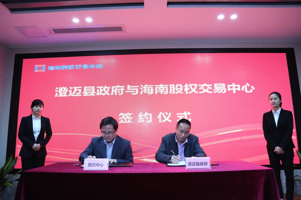 為了加強澄邁縣與股交中心的合作,現場,鄭奮與李曉剛共同簽署了戰略合作協議。隨后,楊思濤代表澄邁縣政府向海南控股發放澄邁縣3000萬股權投資管理資金,并由柳松華代表海南控股接收。