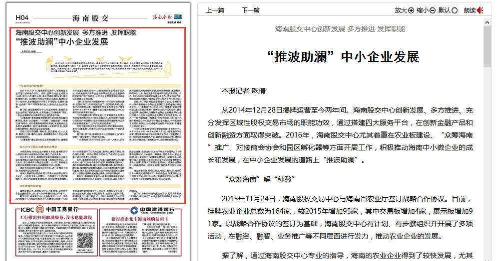 近日,證券導(dǎo)報(bào)以?xún)蓚€(gè)版面整版報(bào)道海南股權(quán)交易中心兩周年,關(guān)注股交中心兩年以來(lái)的發(fā)展。
