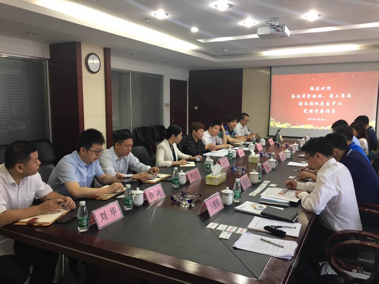 5月25日-26日,海南股權交易中心在省政府金融辦資本信用處處長廖增梁的帶領下,前往廣州股權交易中心、湖南股權交易所進行調研學習。海南省工商局、澄邁縣政府、澄邁老城開發區相關工作人員,以及海南股交中心副總經理程棟才、運營管理部負責人一同參與調研。