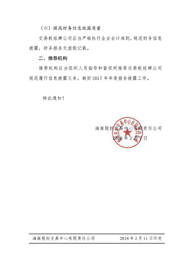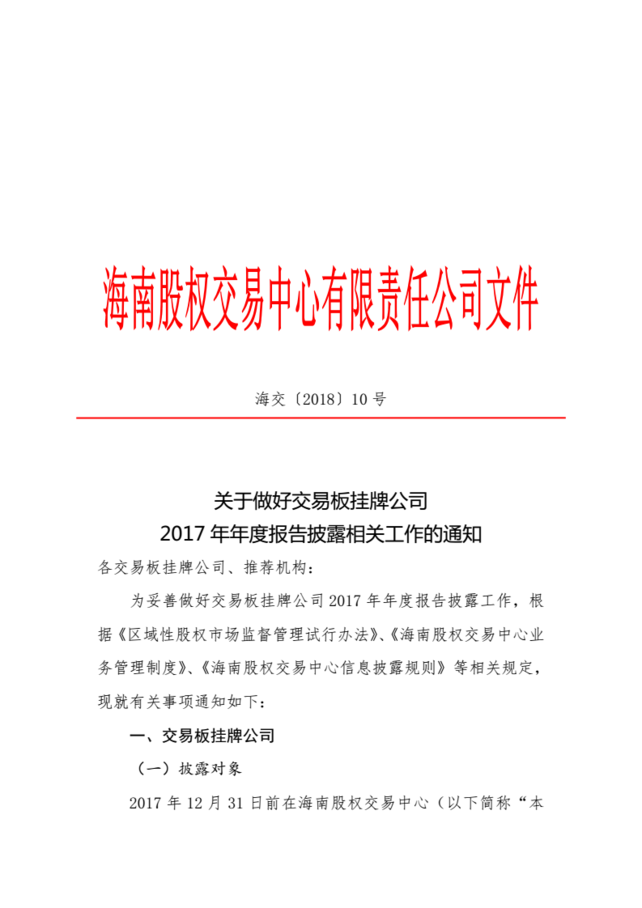 關于做好交易板掛牌公司2017年年度報告披露相關工作的通知