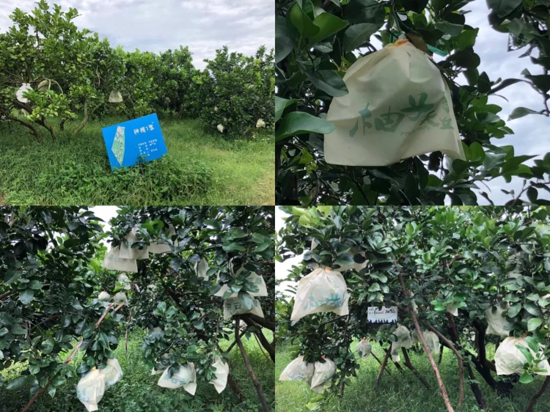 小編看到,目前所有參與眾籌的蜜柚果樹每棵皆碩果累累,壓得樹枝彎下了腰,為了防止暴雨暴曬蟲害等外部因素對蜜柚生長的影響,洪安莊園還給即將被采摘的蜜柚一個(gè)個(gè)單獨(dú)穿上了印有“柚子夫婦”logo的“外衣”,每棵樹也有自己單獨(dú)的編號和姓名牌,生長得飽滿豐盈的蜜柚就等待著主人們的采摘啦