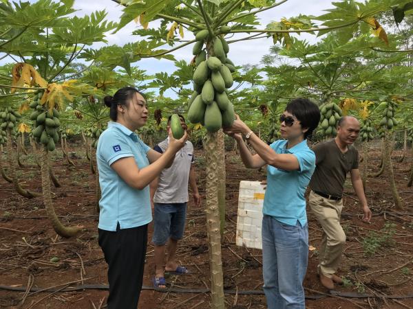 為了幫助加六村貧困農戶打開紅心木瓜的銷路,在海南控股、海南金控的指導下,海南股交在“海惠盈”平臺發起木瓜眾籌,借助微信精準營銷,在極短的時間內完成了木瓜的銷售,助力貧困農戶拓寬銷售渠道,實實在在增加貧困農戶收入。這不,14日下午眾籌成功,15日一大早海南股交扶貧眾籌團隊在海南股交副總經理兼財務總監唐玉萍及總經理助理卜麗麗的帶領下來到加六村,幫助農戶一起進行木瓜采摘、分揀、優選好果等工作,將木瓜運送至海口倉庫,為后續的發貨做準備。值得一提的是,本次海南股交發動旗下掛牌企業專業的水果貿易商海南奢旅貿易有限公司,一同幫助農戶將木瓜統一包裝、打包發貨。