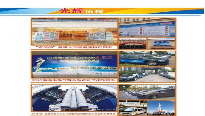 公司緊盯國際國內汽車租賃行業大發展趨勢,顛覆傳統繁瑣的租車模式,結合海南島旅游特點,不斷升級服務標準,以海口總公司、三亞分公司為支點將輻射全島,支持全島24小時送車上門,免費機場車站接送車,異地還車,信用卡現場結算,緊急救援等服務,實現真正意義上的無縫對接。
