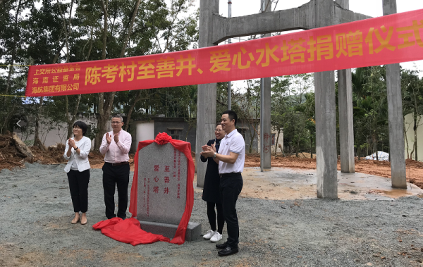 12月8日,為做好海南資本市場扶貧行動的宣傳工作,展示海南資本市場扶貧成效,海南證監局聯合海南證券期貨業協會、海南上市公司協會來到幫扶點樂東縣大安鎮陳考村進行至善井、愛心水塔揭牌捐贈儀式活動,隨行參加的企業主要有海航集團、上交所公益基金會、海南股交、海南橡膠、希源農業、中國銀河證券、國泰君安證券、國信證券、新湖期貨等。