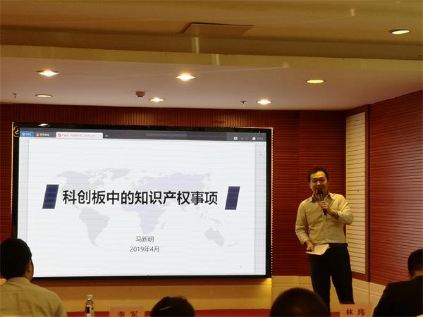 會上,海南股交培訓總監馮偉民、興業證券投資銀行業務總部董事副總經理陳旸以及中金浩資產評估公司首席評估師馬新明三位嘉賓分別從科創板設立的背景、區域性股權交易市場科創專板建設、如何進行知識產權保護、知識產權風險防范、知識產權金融創新服務等幾個方面對科創板上市規則和知識產權在科創板中的地位進行了詳細而深入的解讀。