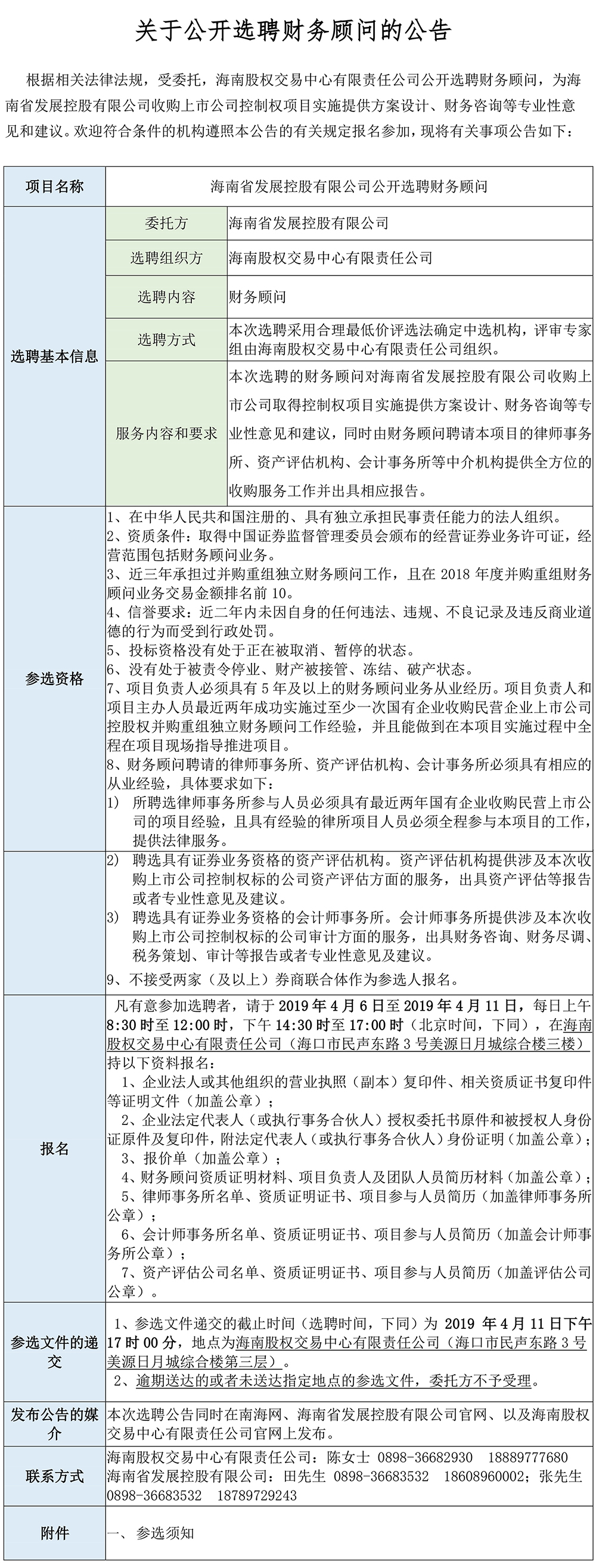 【公開選聘】海南省發(fā)展控股有限公司公開選聘財務(wù)顧問