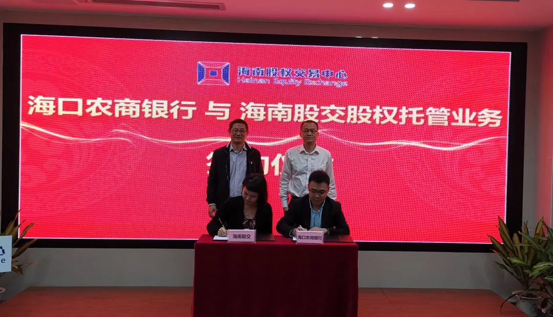 在現(xiàn)場領(lǐng)導、嘉賓的見證下,海南股交與海口農(nóng)商銀行正式簽署銀行股權(quán)登記托管協(xié)議,海口農(nóng)商行成為今年7月中國銀保監(jiān)會發(fā)布《商業(yè)銀行股權(quán)托管辦法》以來,率先在海南區(qū)域性股權(quán)交易市場運營機構(gòu)成功托管股權(quán)的非上市商業(yè)銀行,這對我省商業(yè)銀行股權(quán)托管工作極具示范意義。