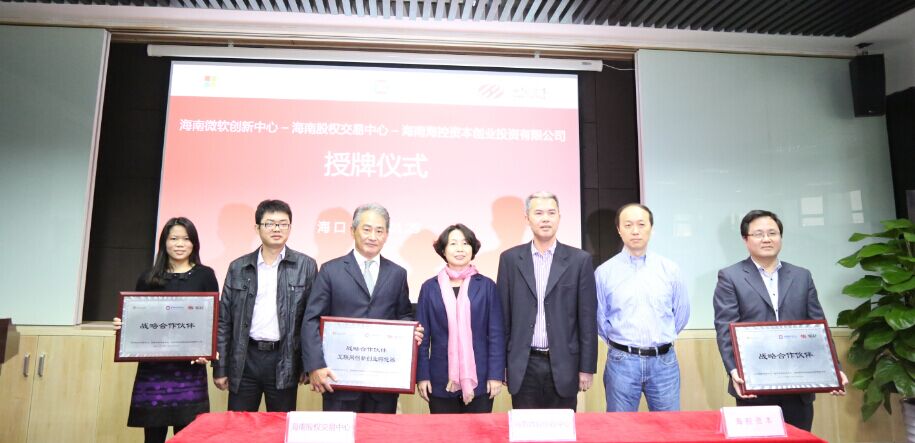 1月29日,為貫徹落實國家“互聯(lián)網(wǎng)+”戰(zhàn)略部署以及延續(xù)海南省政府“創(chuàng)新創(chuàng)業(yè)節(jié)”戰(zhàn)略指導方針,海南股權交易中心聯(lián)合海南微軟創(chuàng)新中心和海南海控資本創(chuàng)業(yè)投資有限公司,在海口復興城互聯(lián)網(wǎng)創(chuàng)業(yè)孵化工廠共同舉辦戰(zhàn)略合作簽約儀式,三方主要負責人出席了本次儀式。