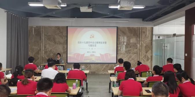 為進一步深入學習貫徹黨的十九屆四中全會精神, 近日,海南金控黨總支委員、副總經理兼財務總監,海南股交董事長吳惠玉在海南股交進行黨的十九屆四中全會精神宣講暨專題黨課,海南股交全體員工參加會議。