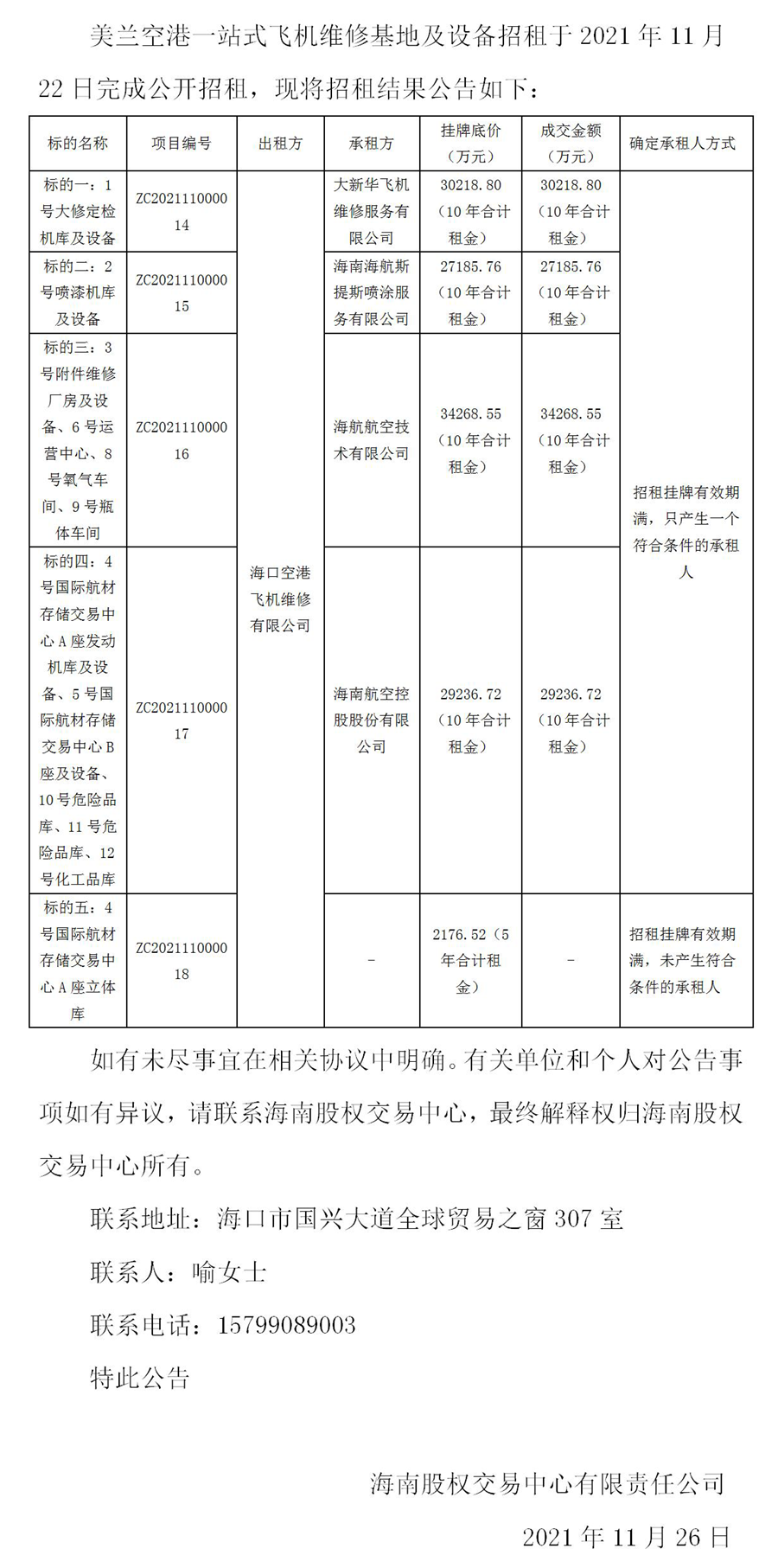美蘭空港一站式飛機維修基地及設備招租結果公告