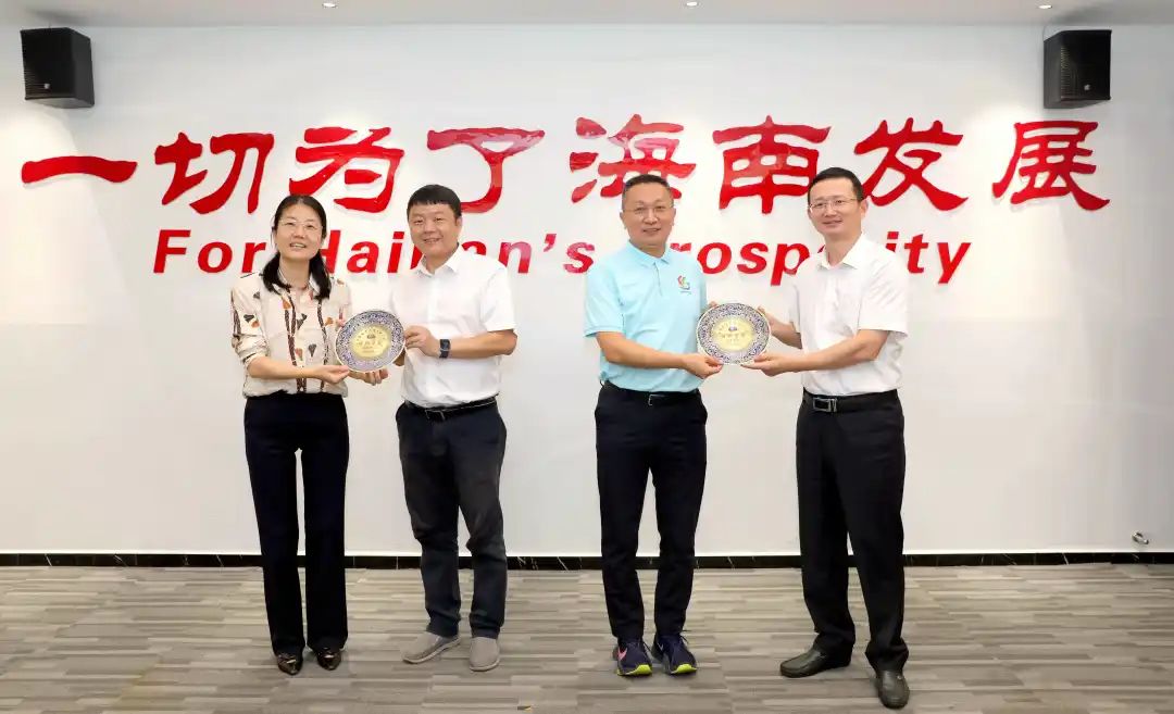 ▲海南控股黨委書記、董事長周軍平,總經理任清華向掛職干部孫永強、趙觀宇同志贈送紀念品。