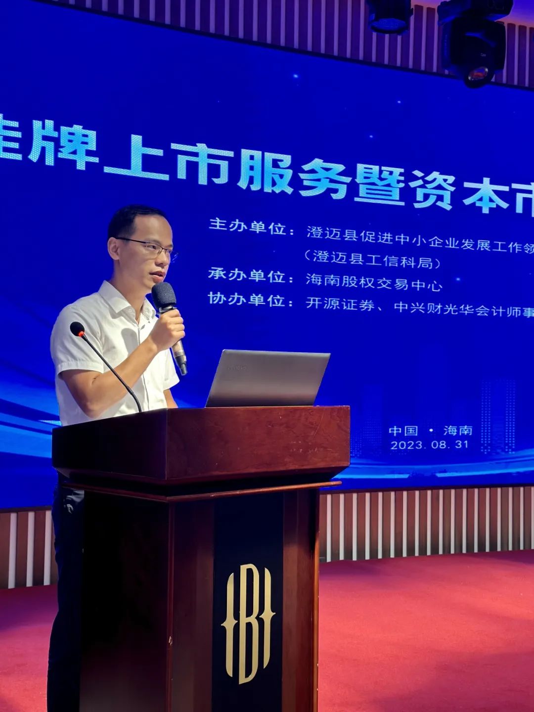 為幫助澄邁企業(yè)及時(shí)掌握上市掛牌最新政策、搶抓資本市場(chǎng)改革機(jī)遇,加快企業(yè)在多層次資本市場(chǎng)上市掛牌步伐,8月31日,海南股權(quán)交易中心聯(lián)合券商及會(huì)計(jì)師事務(wù)所,為澄邁企業(yè)舉辦掛牌上市服務(wù)暨資本市場(chǎng)路徑規(guī)劃專題培訓(xùn)。澄邁縣工業(yè)信息化和科學(xué)技術(shù)局副局長(zhǎng)朱綠華,澄邁縣金融工作中心主任許夢(mèng)瑤,海南股權(quán)交易中心董事長(zhǎng)朱磊、總經(jīng)理吳杰參加本次活動(dòng)。