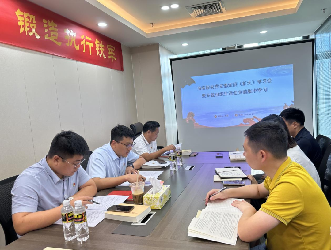 根據(jù)總公司黨委相關(guān)部署,結(jié)合海南股交黨支部主題教育工作安排,8月24日,海南股交開展主題教育專題組織生活會(huì)會(huì)前集中學(xué)習(xí),海南金控黨總支委員、總經(jīng)理助理,海南股交董事長(zhǎng)朱磊主持會(huì)議。