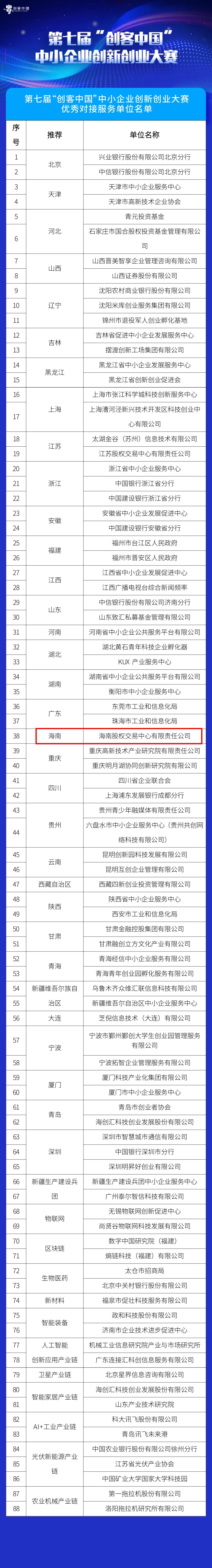 海南股交獲第七屆“創客中國”中小企業創新創業大賽“優秀對接服務單位”稱號