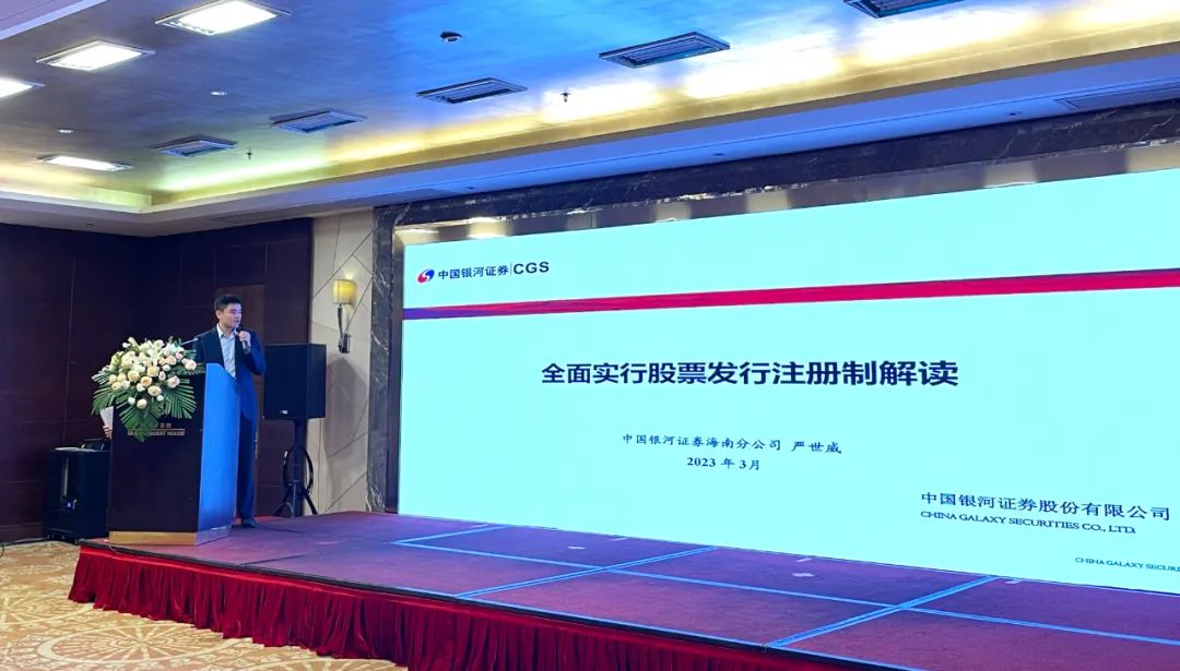 在培訓環節,培訓由中國銀河證券海南分公司帶來“全面實行股票發行注冊制解讀”主題講座。授課導師圍繞上市培育全過程,從“注冊制改革概況、上市(掛牌)規則解讀、海南中小企業資本市場路徑”等幾個方向,以理論結合案例的方式進行了系統講解,全面分析注冊制改革背景下,我省中小企業在上市中的機遇與挑戰。主辦方向參會企業代表發放《上市掛牌政策匯編》,幫助企業更好的了解我國多層次資本市場的上市要求。