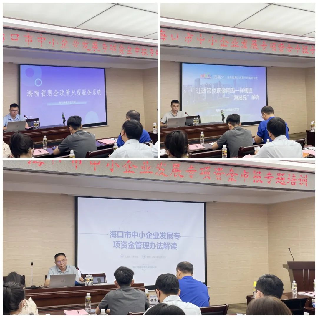 會上,海口市科工信局及市政務局政策梳理團隊分別解讀了《海口市中小企業發展專項資金管理辦法》《海口市中小企業發展專項資金線上申報操作手冊》,并由海南飛行者科技有限公司現場演示了線上申報2023年海口市中小企業發展專項資金“精特新中小企業獎勵”。隨后,數字海南有限公司向參會企業講解了“海易兌”平臺系統架構、操作流程等方面內容。
