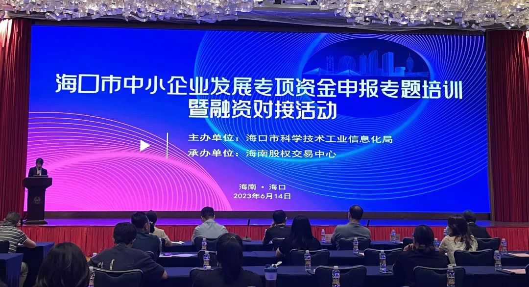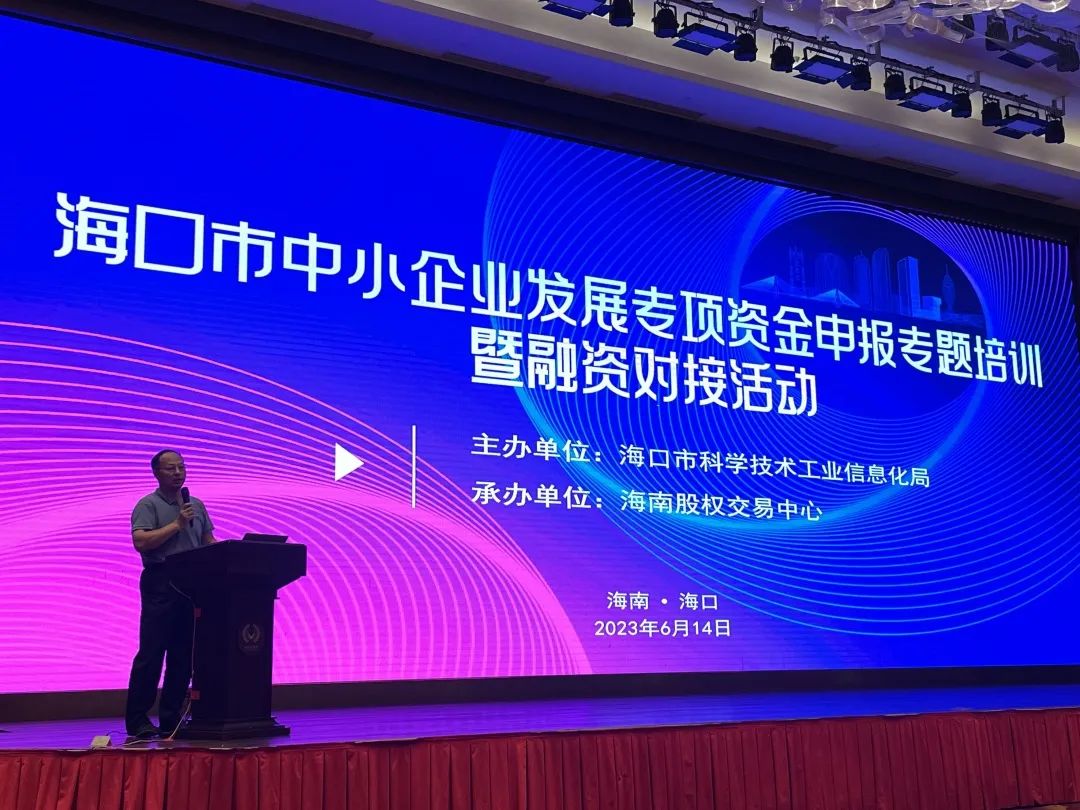 6月14日上午,由海口市科工信局主辦、海南股交承辦的海口市中小企業發展專項資金申報專題培訓暨融資對接活動在海口舉辦。
