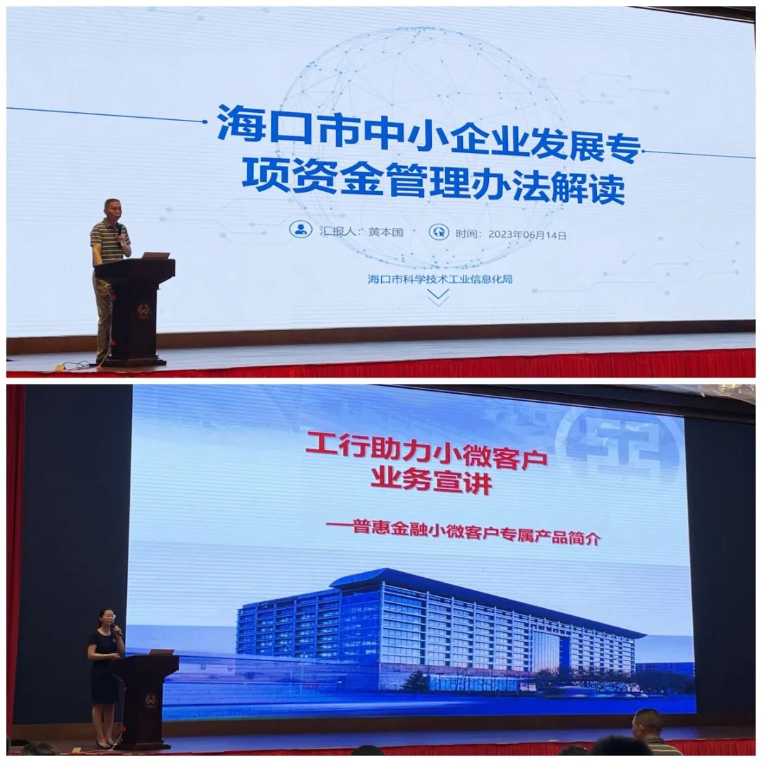 海口市科工信局解讀了《海口市中小企業發展專項資金管理辦法》;中國工商銀行上臺宣介該行特色的普惠金融信貸產品。會后,針對參會企業提出的專項資金申報流程及貸款流程等問題,現場工作人員給予了解答。