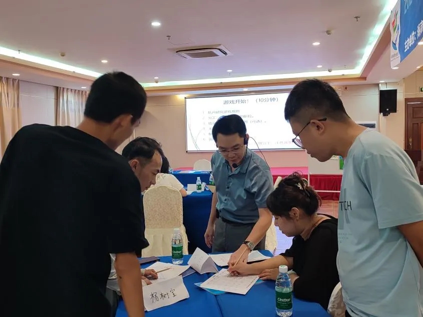 在創(chuàng)業(yè)導(dǎo)師陳銘浩的引導(dǎo)下,與會(huì)創(chuàng)業(yè)者分為若干個(gè)組,通過不同職場(chǎng)角色的扮演,以售賣帽子為主題,模擬企業(yè)經(jīng)營(yíng)周期,從購(gòu)買原材料、支付工資成本,到處理貸款利息等各個(gè)方面環(huán)節(jié),按照預(yù)設(shè)的周期完成不同的工作任務(wù),并根據(jù)售賣情況,及時(shí)記錄銷售量、利潤(rùn)等信息。創(chuàng)業(yè)者深入角色、積極討論,各組間彼此合作、博弈與競(jìng)爭(zhēng)。