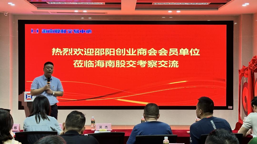 海南股交總經理吳杰對湖南邵陽市創業商會領導及會員單位代表的到來表示熱烈歡迎,他表示,本次活動為雙方后續開展業務合作開創了良好局面,期待雙方以此次活動為契機,建立起更加緊密的互動與合作。他歡迎邵陽市創業商會會員單位到自貿港投資興業,海南股交將全力為企業提供培育孵化、融資對接等一攬子服務,助力企業高質量發展。