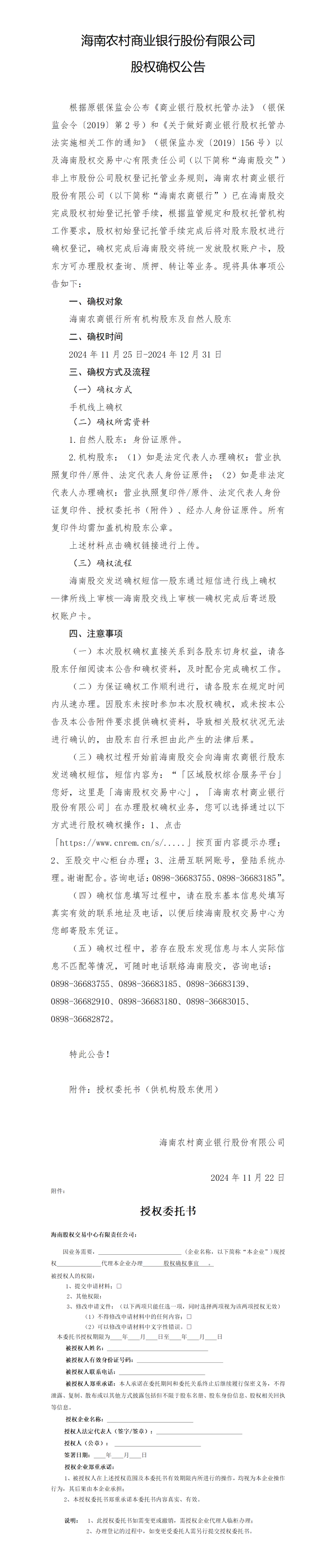海南農村商業銀行股份有限公司股權確權公告