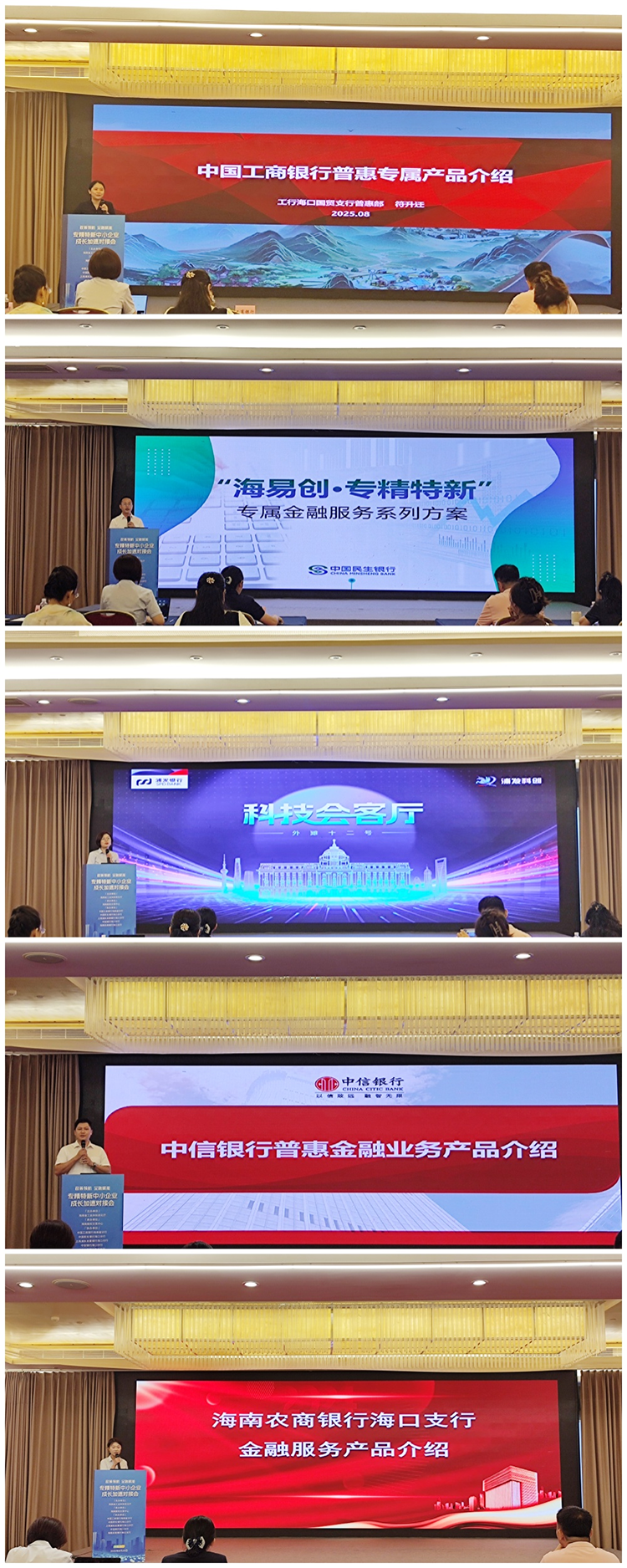 中國工商銀行海南省分行、中國民生銀行海口分行、上海浦東發展銀行海口分行、中信銀行海口分行、海南農商銀行海口支行分別作“專精特新”產品宣介。海南永集印刷有限公司相關負責人在活動現場分享了公司申請“園區貸”的融資歷程及相關經驗。